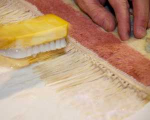 A high-powered and completely rug-safe cleaner is applied to the rug. Then we scrub the rug thoroughly on both sides before flushing water through the rugs in our wash pit. This process pushes out virtually all of the remaining dirt in the rug.