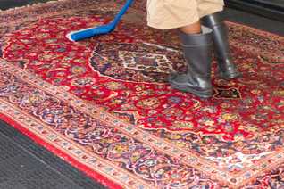 Rugs are beaten before being washed to remove dry soils that can't be removed by vacuuming alone.